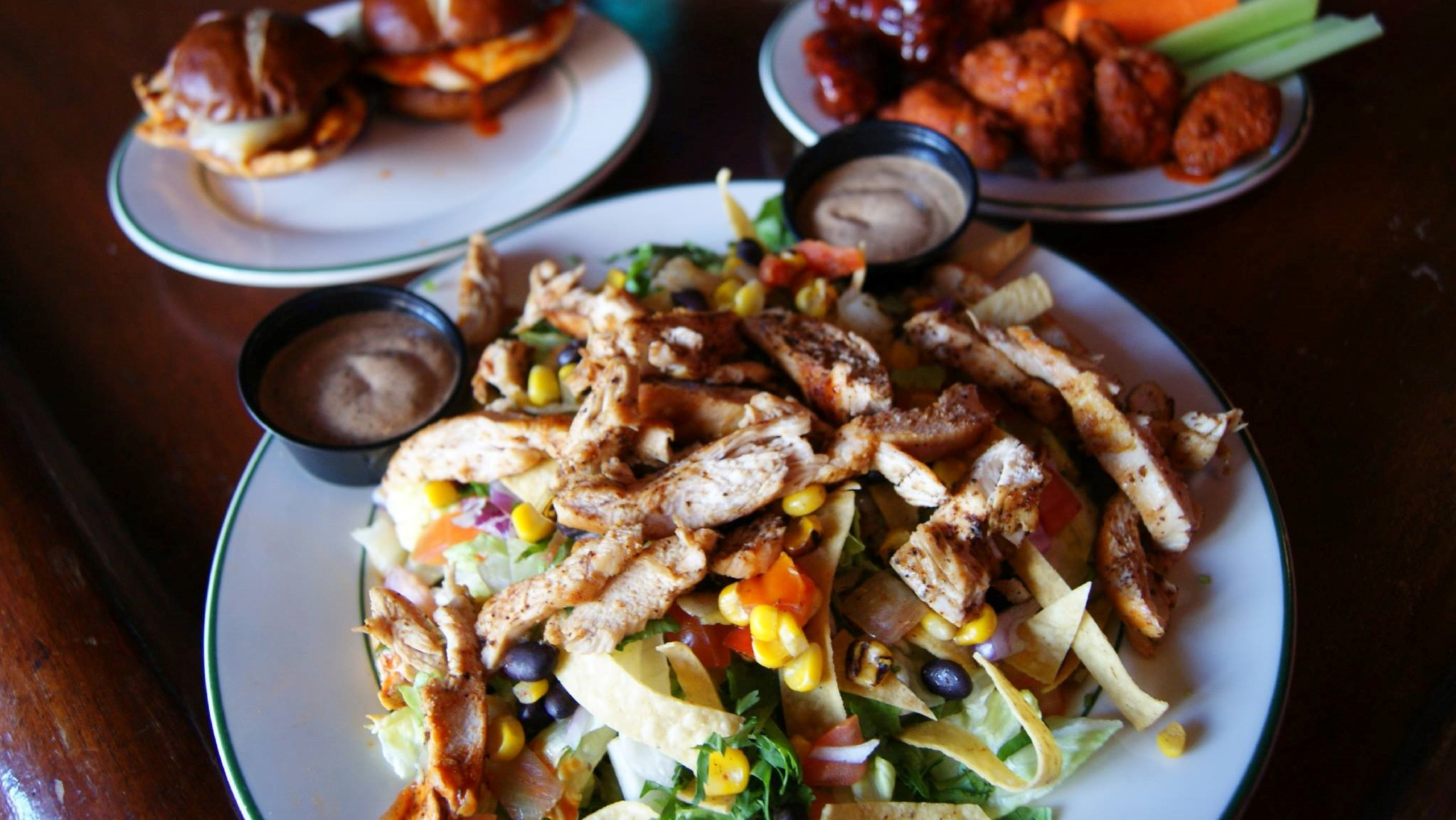 Mixed greens, chicken breast, black beans, corn, onion, tomato, cilantro and thin tortilla chips. Served with a southwestern dressing.